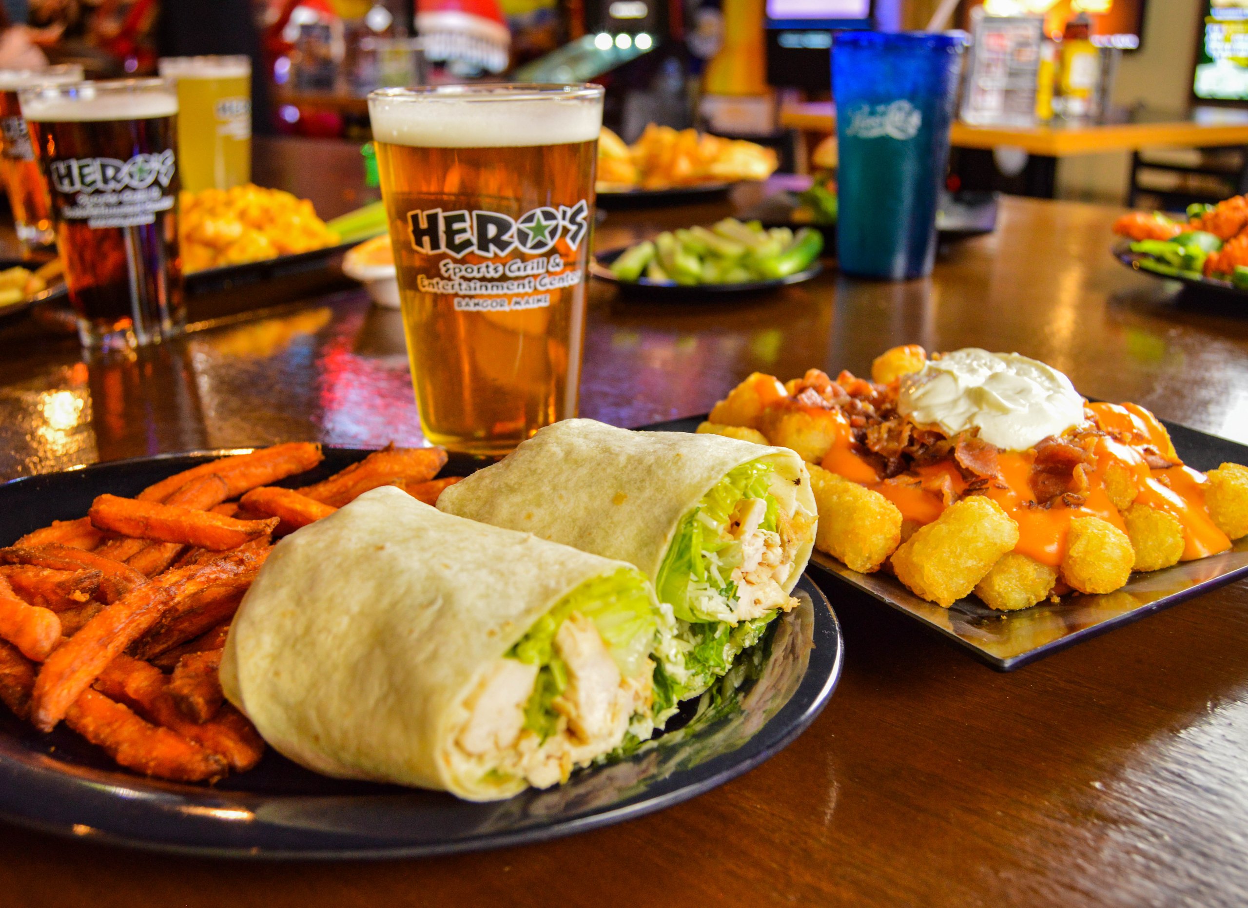 We have a game changer for you right here. Try one of Hero’s delicious and incredible sandwiches! We offer all types, from traditional club sandwiches to BLTs to crispy chicken wraps. All of our sandwiches are served with french fries, oe homemade potato chips, but feel free to substitute tater tots, onion rings or sweet potato fries for just $1.49.